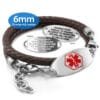 6mm Double Wrap Brown Leather Bracelet with 316L Stainless Steel Medical ID Tag – Engraving Included (BLD6_1)