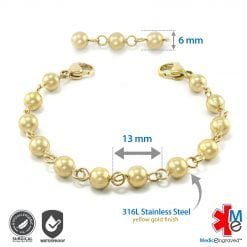 6mm Solid Ball Link Stainless Steel Replacement / Add-on Bracelet in Yellow Gold finish (bracelet only – tag not included) – BRAC-BLG6