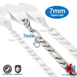 7mm Figaro Link Stainless Steel Replacement / Add-on Bracelet (bracelet only – tag not included) – BRAC-FS7
