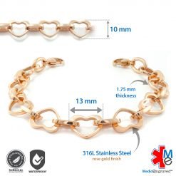 10mm Heart Link Stainless Steel Replacement / Add-on Bracelet in Rose Gold finish (bracelet only – tag not included) – BRAC-HTR10