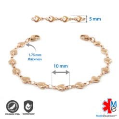 5mm Heart Link Stainless Steel Replacement / Add-on Bracelet in Rose Gold finish (bracelet only – tag not included) – BRAC-HTR5