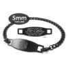 Curb Link Bracelet in 316L Stainless Steel Black Finish with Medical ID Tag – 5mm (CB5-1)