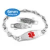 Our medical ID products are available in many metal finish options – (plain Stainless Steel, Rose Gold, Yellow Gold, or Black finish). The base metal in our medical bracelets is 316L Surgical Stainless Steel which is extremely durable, hypoallergenic, and can be worn in the pool or shower and will not tarnish.