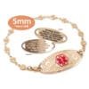 • The rose gold / yellow gold / black finish is applied through PVD – an industry standard used by well known watch brands like Rolex and Cartier. PVD coatings are more brilliant and resistant to corrosion from sweat and regular wear than regular gold plating. It’s an ideal choice for medical ID jewelry and for people who never take their jewelry off, as it is extremely vibrant and durable for many years. (we have yet to have customers reporting any fading issues to us!)