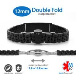 Double Fold Fancy Link Watch Band in 316L Stainless Steel Black Finish – 12mm (LD12-BRD)