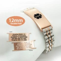 Double Fold Fancy Link Watch Band in 316L Stainless Steel 2T Rose Gold Finish – 12mm (LDT12-RBK)
