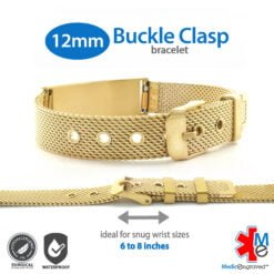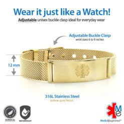 Buckle Clasp Medical ID Mesh Band with Yellow Gold Finish – 12mm (MB12-GEM)