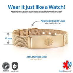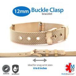 Buckle Clasp Medical ID Mesh Band with Rose Gold Finish – 12mm (MB12-REM)