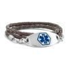 This triple strand leather bracelet is perfect for any casual attire. With a brown fancy braid, it is guaranteed to catch the eye of anyone. This unisex bracelet is interchangeable, as it offers a double lobster clasp and it is equipped with a stainless steel medical ID tag, which will provide your medical and emergency contact information. Made from 316L Stainless Steel, it is hypoallergenic, so it can be worn by anybody! It is recommended that the bracelet is removed prior to showering or swimming, because water can damage leather.