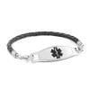 This single strand leather bracelet is perfect for any casual attire. With a black fancy braid, it is guaranteed to catch the eye of anyone. This unisex bracelet is interchangeable, as it offers a double lobster clasp and it is equipped with a stainless steel medical ID tag, which will provide your medical and emergency contact information. Made from 316L Stainless Steel, it is hypoallergenic, so it can be worn by anybody! It is recommended that the bracelet is removed prior to showering or swimming, because water can damage leather.