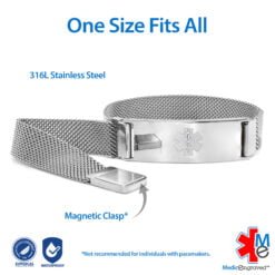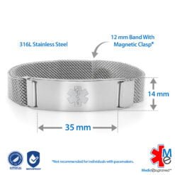 Magnetic Medical ID Mesh Band in Stainless Steel – 12mm (MG12-SEM)