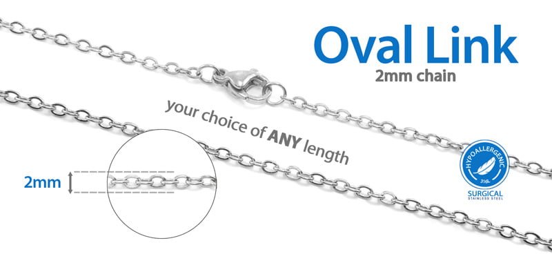 | Chain Type | 2mm Oval Link – SS |