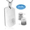 A great alternative to medical bracelets. Forgetting to put on your bracelet or watch in the morning? A medical ID necklace may be the right fit for you!  No need to remove it, you can simply wear it all the time.  This oblong shaped medical ID charm is a made from 316L stainless steel with a red enameled medical symbol on the front corner, which serves to alert first responders to your medical information engraved on the back. Your choice of a 19 or 23 inch, 3mm curb necklace is included and is 100% 316L surgical stainless steel, which is hypoallergenic, so it can be worn by anybody!