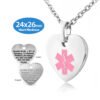 A great alternative to medical bracelets. Forgetting to put on your bracelet or watch in the morning? A medical ID necklace may be the right fit for you! No need to remove it, you can simply wear it all the time. This oblong shaped medical ID charm is a made from 316L stainless steel with a red enameled medical symbol on the front corner, which serves to alert first responders to your medical information engraved on the back. Your choice of a 19 or 23 inch, 3mm curb necklace is included and is 100% 316L surgical stainless steel, which is hypoallergenic, so it can be worn by anybody!