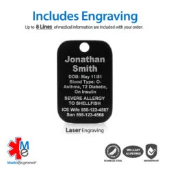 Forgetting to put on your bracelet or watch in the morning? A medical ID necklace may be the right fit for you! No need to remove it, you can simply wear it all the time. This rectangle shaped medical ID charm is a made from 316L stainless steel with an embossed medical symbol on the front, which serves to alert first responders to your medical information engraved on the back. Your choice of a 19 or 23 inch, 3mm curb necklace is included and is 100% 316L surgical stainless steel, which is hypoallergenic, so it can be worn by anybody!
