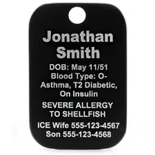 Forgetting to put on your bracelet or watch in the morning? A medical ID necklace may be the right fit for you! No need to remove it, you can simply wear it all the time. This rectangle shaped medical ID charm is a made from 316L stainless steel with an embossed medical symbol on the front, which serves to alert first responders to your medical information engraved on the back. Your choice of a 19 or 23 inch, 3mm curb necklace is included and is 100% 316L surgical stainless steel, which is hypoallergenic, so it can be worn by anybody!