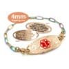 Paperclip Link Bracelet in 316L Stainless Steel Rose Gold Rainbow Finish with Medical ID Tag – 4mm (PCRR4-3)