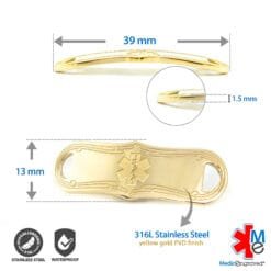 Medical ID Tag in 316L Stainless Steel Yellow Gold Finish with White Enamel Logo (TAG-GWT3)