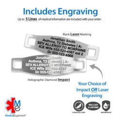 MedicEngraved® now offers two distinct engraving options for medical ID bracelets: Holographic Diamond Impact and Black Laser Marking