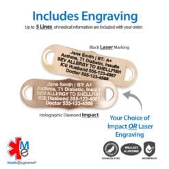 MedicEngraved® now offers two distinct engraving options for medical ID bracelets: Holographic Diamond Impact and Black Laser Marking