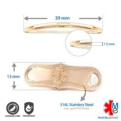 Medical ID Tag in 316L Stainless Steel Rose Gold Finish with White Enamel Logo (TAG-RWT3)