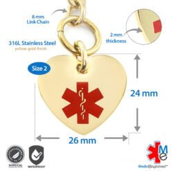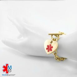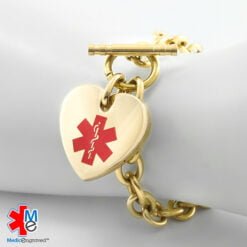 Oval Link 8mm Toggle Bracelet in 316L Stainless Steel Yellow Gold Finish with 24x26mm Heart Medical ID Charm (TLG8-GRD)