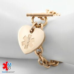 Oval Link 8mm Toggle Bracelet in 316L Stainless Steel Rose Gold Finish with 24x26mm Heart Medical ID Charm (TLR8-REM)