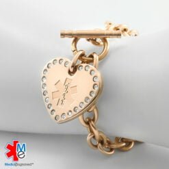 Oval Link 8mm Toggle Bracelet in 316L Stainless Steel Rose Gold Finish with 24x26mm Heart Medical ID Charm w/Crystals (TLR8-REMSS)