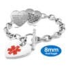 Oval Link 8mm Toggle Bracelet in 316L Stainless Steel with 24x26mm Heart Medical ID Charm (TLS8-SPK)